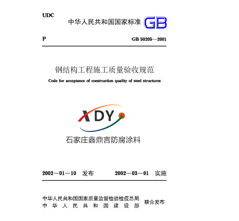 本文介紹了GB50205-2001鋼結(jié)構(gòu)工程施工質(zhì)量驗(yàn)收規(guī)范對于鋼結(jié)構(gòu)防腐涂料涂裝的表面處理要求,各類防銹漆、底漆對應(yīng)的最低除銹等級及防腐涂料的涂層厚度、驗(yàn)收標(biāo)準(zhǔn)。專業(yè)的XDY鋼結(jié)構(gòu)防腐漆生產(chǎn)廠家石家莊鑫鼎言防腐涂料廠為您提供質(zhì)量優(yōu)異,價格合理的XDY鋼結(jié)構(gòu)防腐涂料全系列產(chǎn)品。
