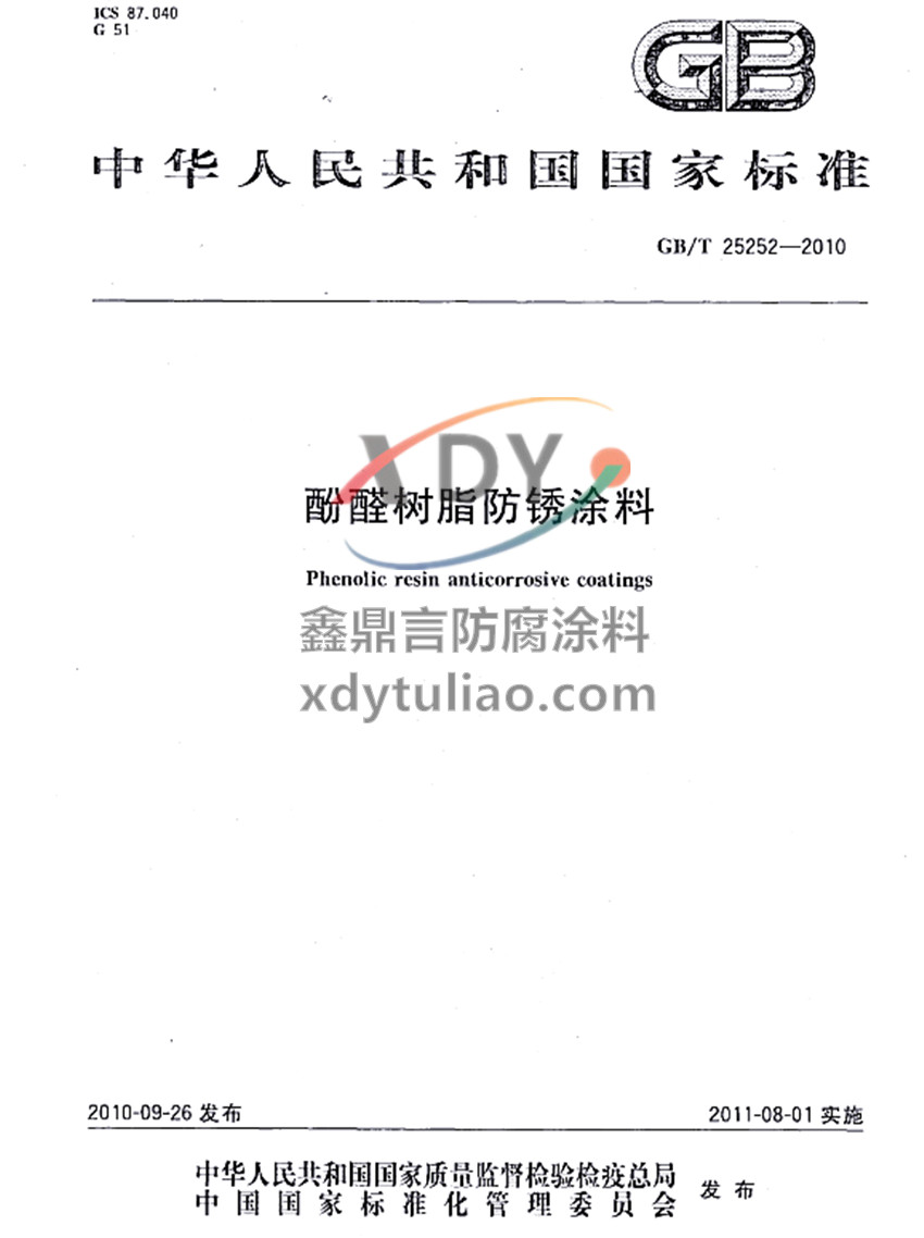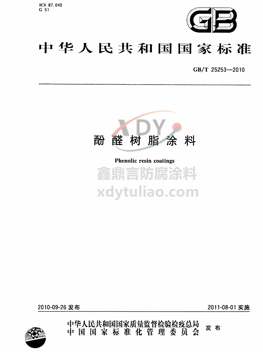 酚醛樹脂涂料國家標(biāo)準(zhǔn)GB/T 25253-2010
