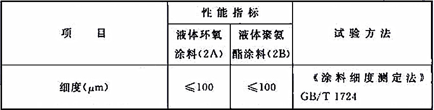 2 涂料的兩個(gè)組分應(yīng)由同一生產(chǎn)商配套提供,涂料性能應(yīng)滿足本規(guī)范表2.1、表2.2-1或表2.2-2規(guī)定的性能指標(biāo)。