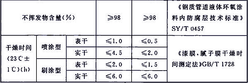 2.1 補(bǔ)口用雙組分無(wú)溶劑環(huán)氧涂料和雙組分無(wú)溶劑聚氨酯涂料性能應(yīng)滿足表2.1的要求。